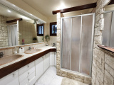 - au rez-de-chaussée : entrée avec placards, séjour double avec poêle à bois, cuisine américaine et équipée (Plaque de cuisson, hotte, lave-vaisselle), wc, salle d'eau, salle de bains avec wc, 4 chambres dont 3 avec placards.