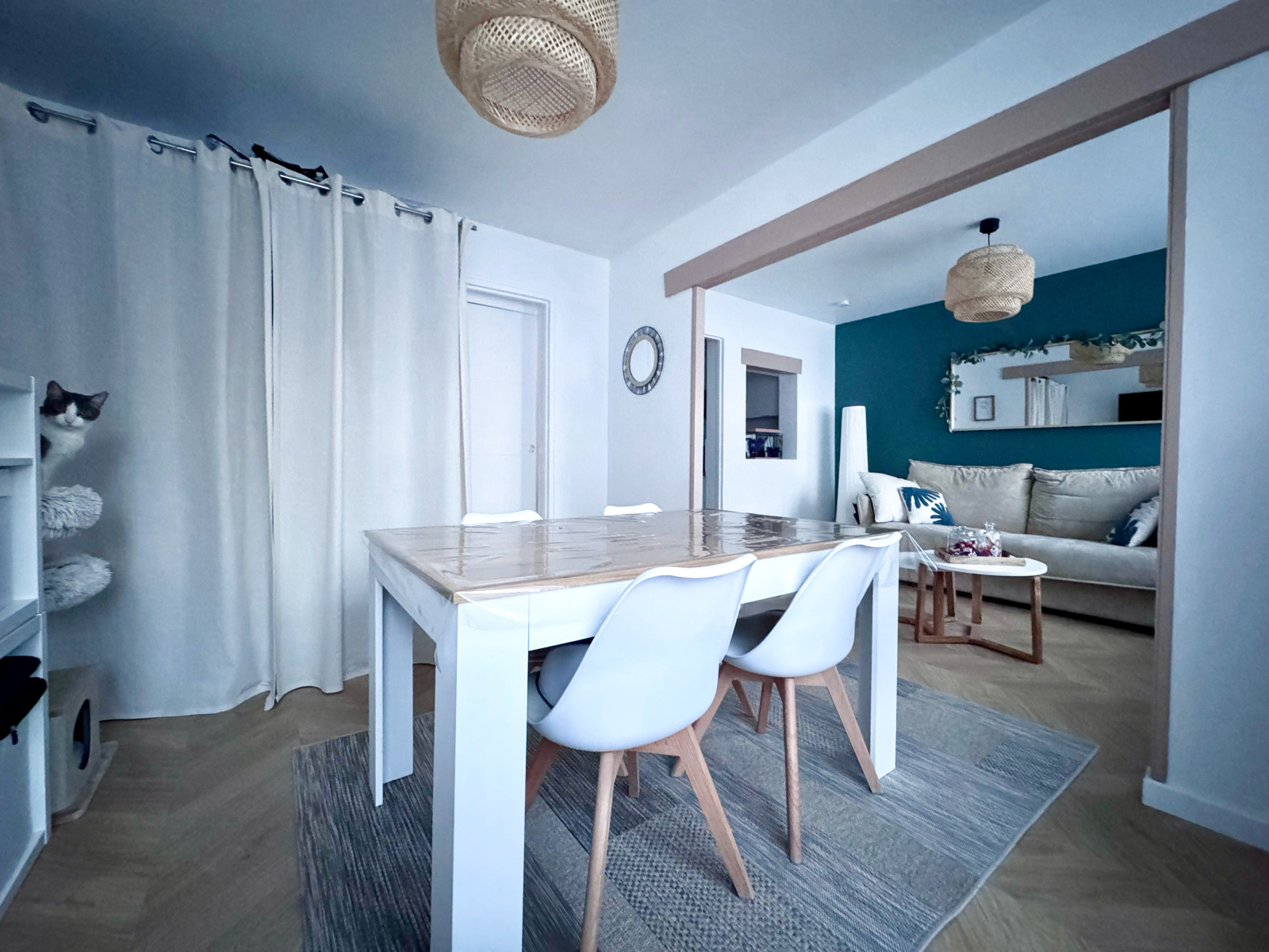 Idéalement situé, venez découvrir ce charmant appartement F3 au style soigné et à la décoration moderne. Lumineux et bien agencé, il se compose d'un séjour double avec une cuisine ouverte, une chambre et une salle d'eau avec wc. Une place de parking et une cave complète ce bien.