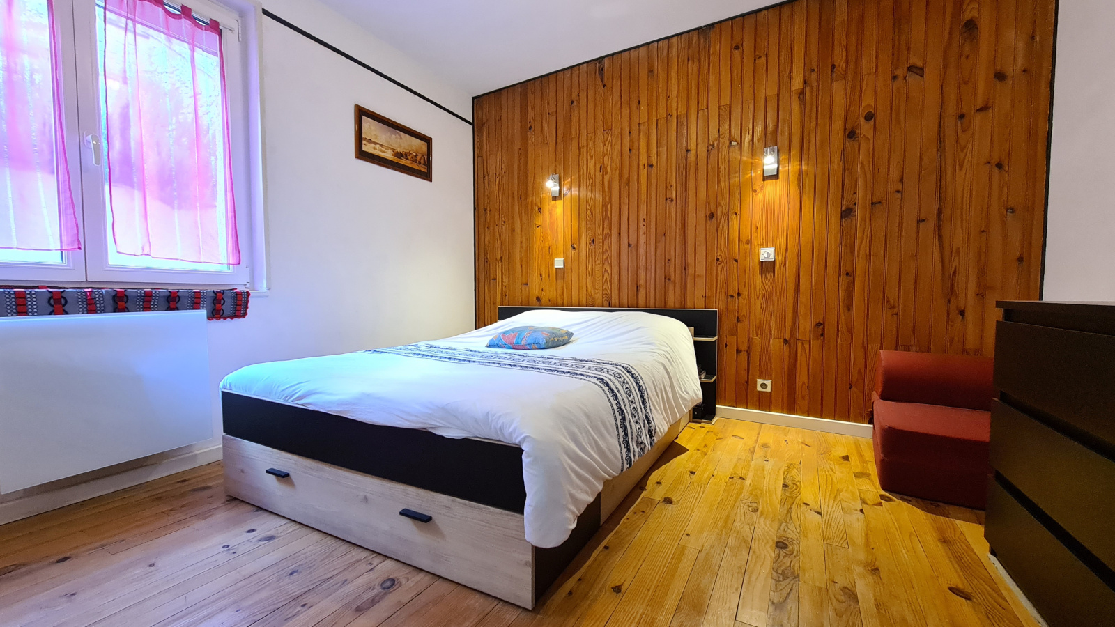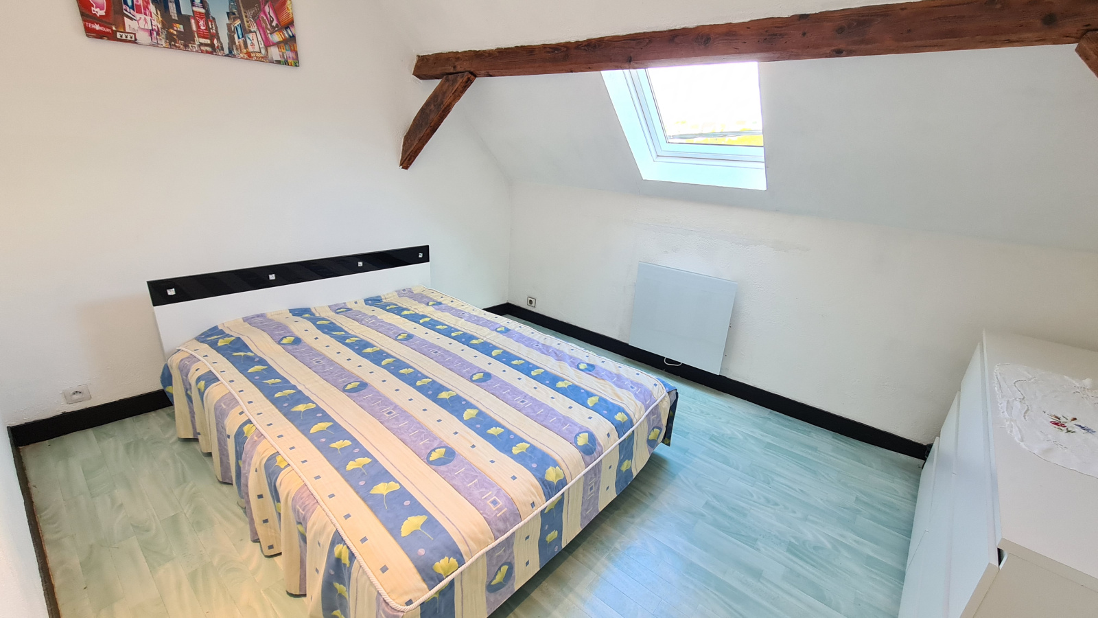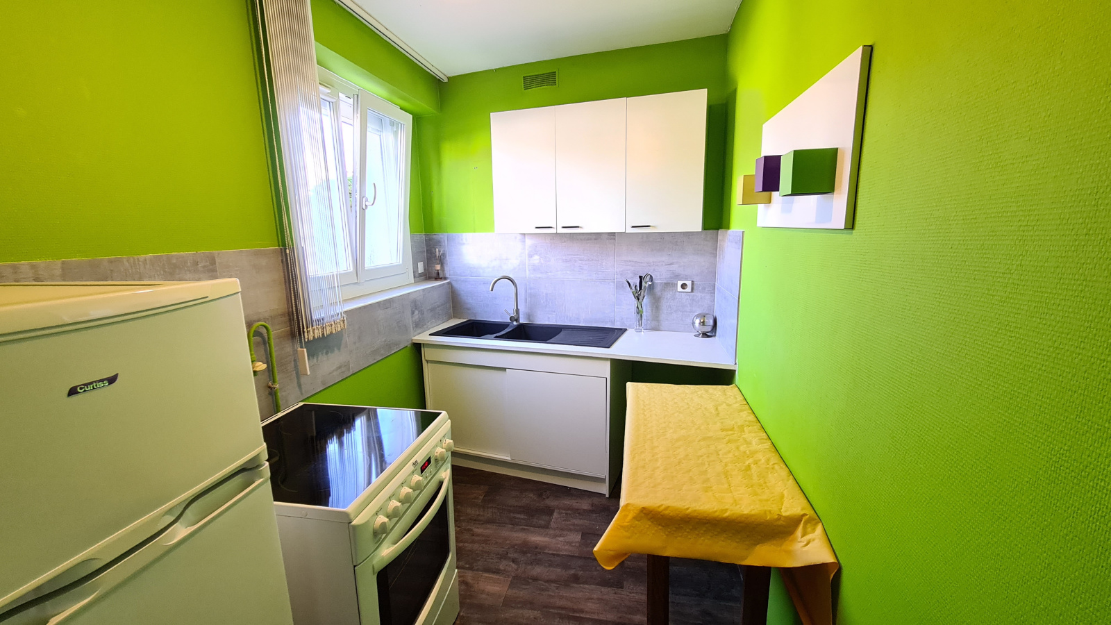 Un appartement F2 avec une entrée sur la pièce à vivre, cuisine aménagée et équipée, salle d'eau avec wc, 1 chambre avec rangement.
