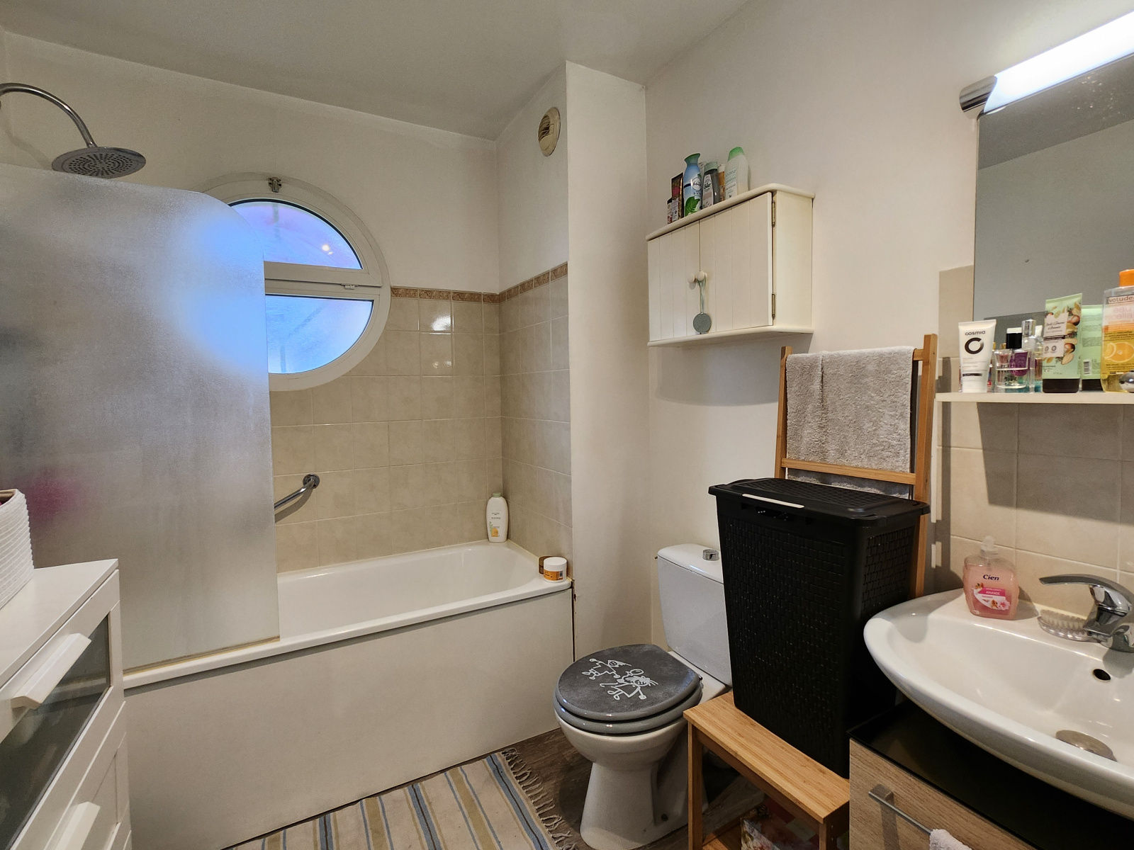 MARLY LA VILLE : Appartement de type F2 loué meublé, résidence "Le Cliquet", en rez-de-chaussée, comprenant : Entrée, cuisine équipée ouverte sur séjour/salon, chambre, salle d'eau avec wc, jardin. 1 place de attionnement privative.