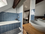 MORTEFONTAINE : Appartement situé au 1er étage, sans ascenseur, vendu loué, comprenant : Séjour avec coin cuisine aménagée et équipée. Un escalier menant aux combles aménagés en chambre avec salle de bains et wc. Ce bien dispose d'une place de parking (mandat en délégation).