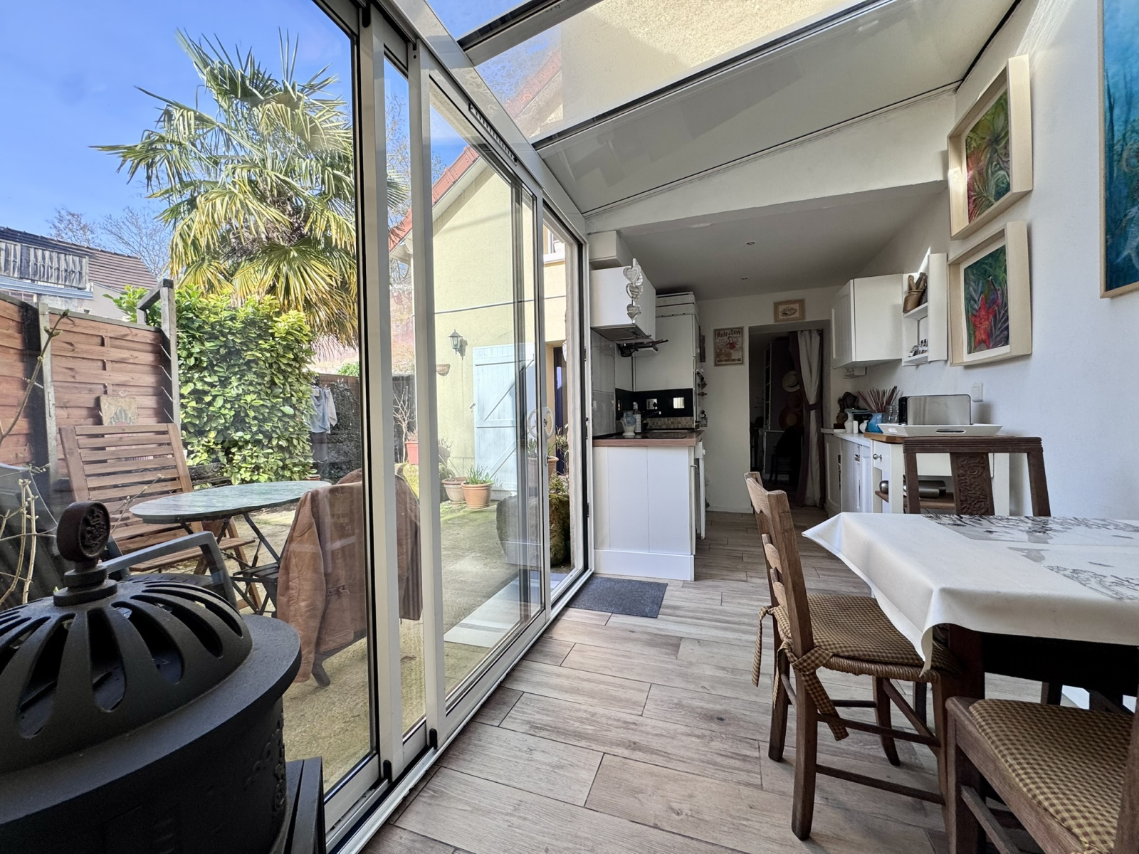 Laissez-vous séduire par cette charmante maison de village. Dès l’entrée, vous découvrez une superbe véranda baignée de lumière, un espace cuisine ainsi qu'un séjour chaleureux. En mezzanine, une belle suite parentale vous attend, avec sa salle d’eau privative équipée d’une baignoire et wc. Depuis la véranda, un second espace indépendant se dévoile, une salle d'eau supplémentaire avec wc, un dressing et à l'étage un bureau ou une chambre. La configuration des lieux permet à chacun de profiter de son indépendance, tout en conservant une atmosphère chaleureuse et conviviale. À l’extérieur, vous apprécierez une agréable, bien exposée et sans vis-à-vis. À découvrir sans tarder !